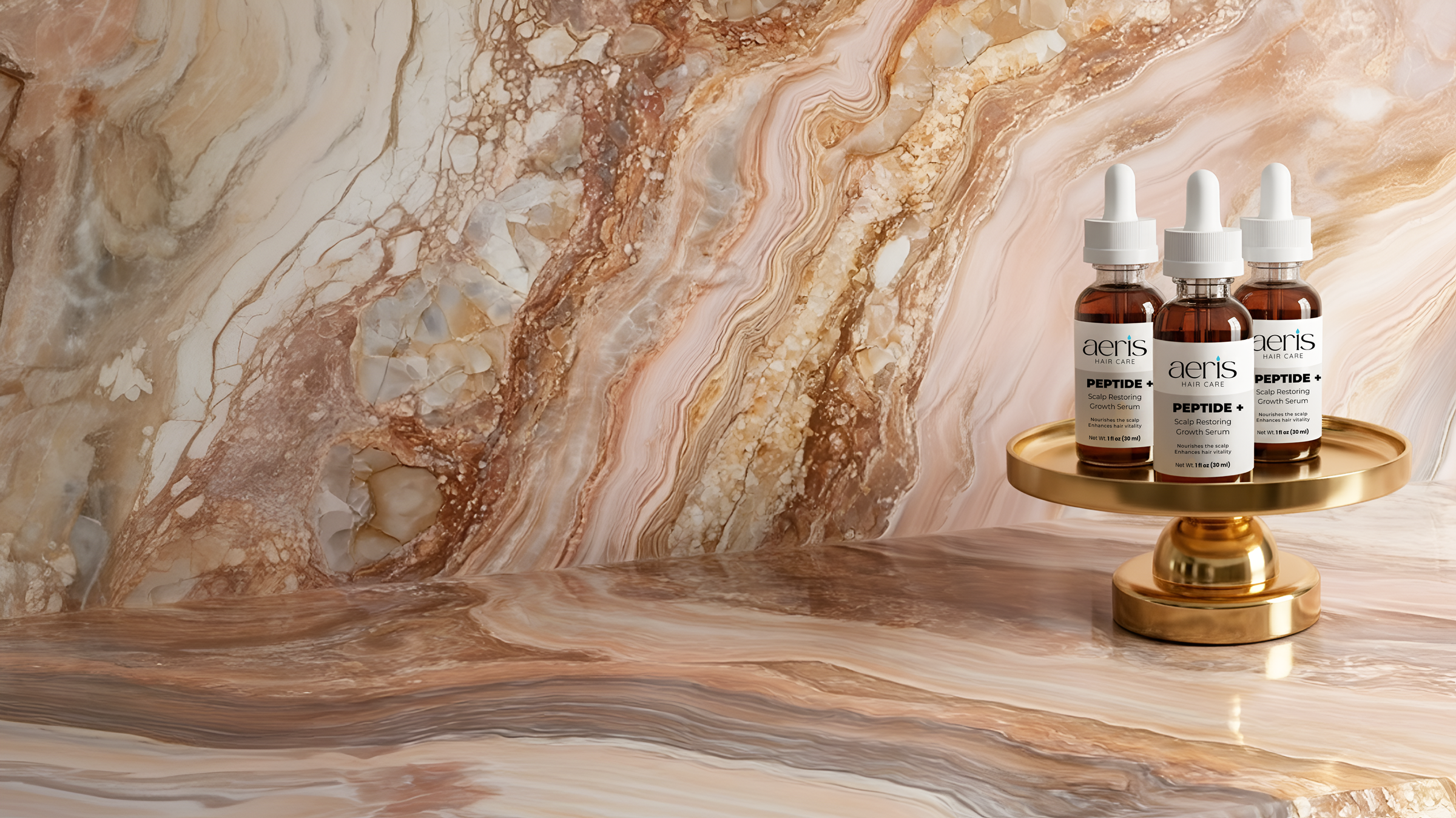 Meet Peptide+ by Aeris Hair Care, the luxury serum that transforms daily care into a ritual. Powered by five bioactive peptides and enriched with eucalyptus and rosemary, it nourishes the scalp, supports denser strands, and smooths hair from root to tip.